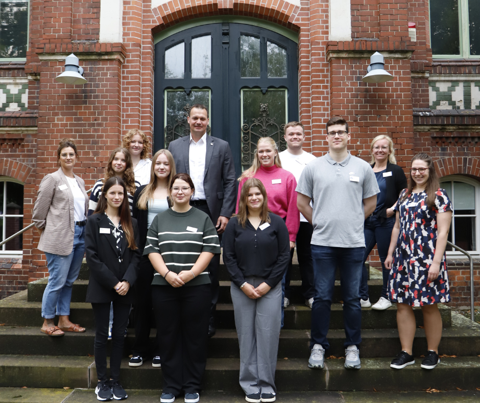 Am Montag, 4. August 2025 begrüßte Beigeordneter Stefan Dreßler neun neue Auszubildende in der Kreisverwaltung. Für Lucy Barby, Sophia Monika Bruchmüller, Finja-Felicitas Gerlt, Samantha Grünewald, Marius Löschkowitz, Marvin Reiter, Nina Schoof, Amy Voigt und Marlene Wesche beginnt damit offiziell die dreijährige Ausbildung - Verwaltungsfachangestellte/Fachrichtung Kommunalverwaltung.