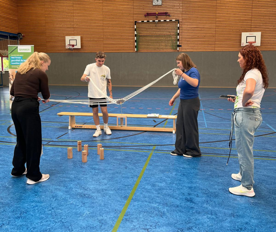 Los ging es schon letzten Freitag, mit einer teambildenden Maßnahme. Ausbildungsbetreuerin Natalie Schleysing lud die neuen Kolleginnen und Kollegen gemeinsam mit der BARMER zu einem Workshop in die Sporthalle des Burger BC ein. Mit Unterstützung der Auszubildenden aus dem dritten Lehrjahr konnten sich die neuen Azubis besser kennenlernen und bei verschiedenen Stationen ihre Geschicklichkeit, Teamfähigkeit sowie Stärke unter Beweis stellen. Für einen ersten Überblick besuchen sie in der Einführungswoche nun die verschiedenen Kreisverwaltungs-Standorte in Burg und Genthin und lernen die unterschiedlichen Fachbereiche kennen.
