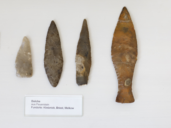 Im würdigen Rahmen konnte Museumsleiterin Antonia Beran den Feuersteindolch nun wieder in die Ausstellung aufnehmen, bisher war dort lediglich eine Fotografie davon zu sehen. Als Dank für die Rückführung des Ausstellungsstückes, erhielt Landrat Kanitz eine kunstvoll gestaltete Replik des Feuersteindolches für seine private Sammlung. Neben einem spannenden Vortrag zur Bedeutung des Dolches, der vermutlich schon vor 1900 im Fiener Bruch bei Karow entdeckt wurde, rundete eine Museumsführung die Veranstaltung ab.