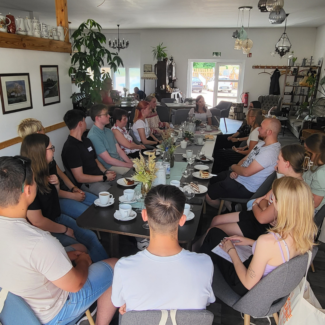 Zu einem Kennenlernnachmittag trafen sich am28. Juni 2024 die künftigen Auszubildenden der Kreisverwaltung. In lockerer Atmosphäre bei Kaffee und Kuchen beantworteten ihnen die Mitarbeiterinnen der Personalabteilung alle Fragen zur Einführungswoche und zum Ausbildungsstart im August. So erfuhren die neuen Kolleginnen und Kollegen nicht nur etwas über ihren neuen Arbeitsplatz, sondern lernten sich auch gleich untereinander besser kennen.