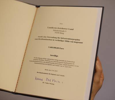 „Durch die Förderung sind wir dem Ziel, das gesamte Jerichower Land mit einem Glasfaseranschluss zu versorgen, ein großes Stück nähergekommen. Dank der deutlich schnelleren Internetverbindung profitieren Haushalte und Unternehmen von zahlreichen Online-Anwendungen und sind damit für die digitale Zukunft gut gerüstet“, erklärt Landrat Dr. Burchhardt erfreut. Um die Anzahl der förderfähigen Adressen und beteiligten Gemeinden zu ermitteln, wurde über das Förderportal des Bundes ein Markterkundungsverfahren durchgeführt. Im Ergebnis werden 9.405 von 34.675 Adresspunkte im Landkreis als förderfähig eingestuft. Davon sollen zunächst 1.149 Adressen in den beiden Städten Genthin und Möckern erschlossen werden. Hierfür wird eine Kooperationsvereinbarung mit den betreffenden Städten geschlossen, die Grundlage für die Beantragung weiterer Fördermittel vom Land ist. Anschließend erfolgt die europaweite Ausschreibung für die Umsetzung des Breitbandausbaus, deren Gesamtkosten sich auf rund neun Millionen Euro belaufen werden.