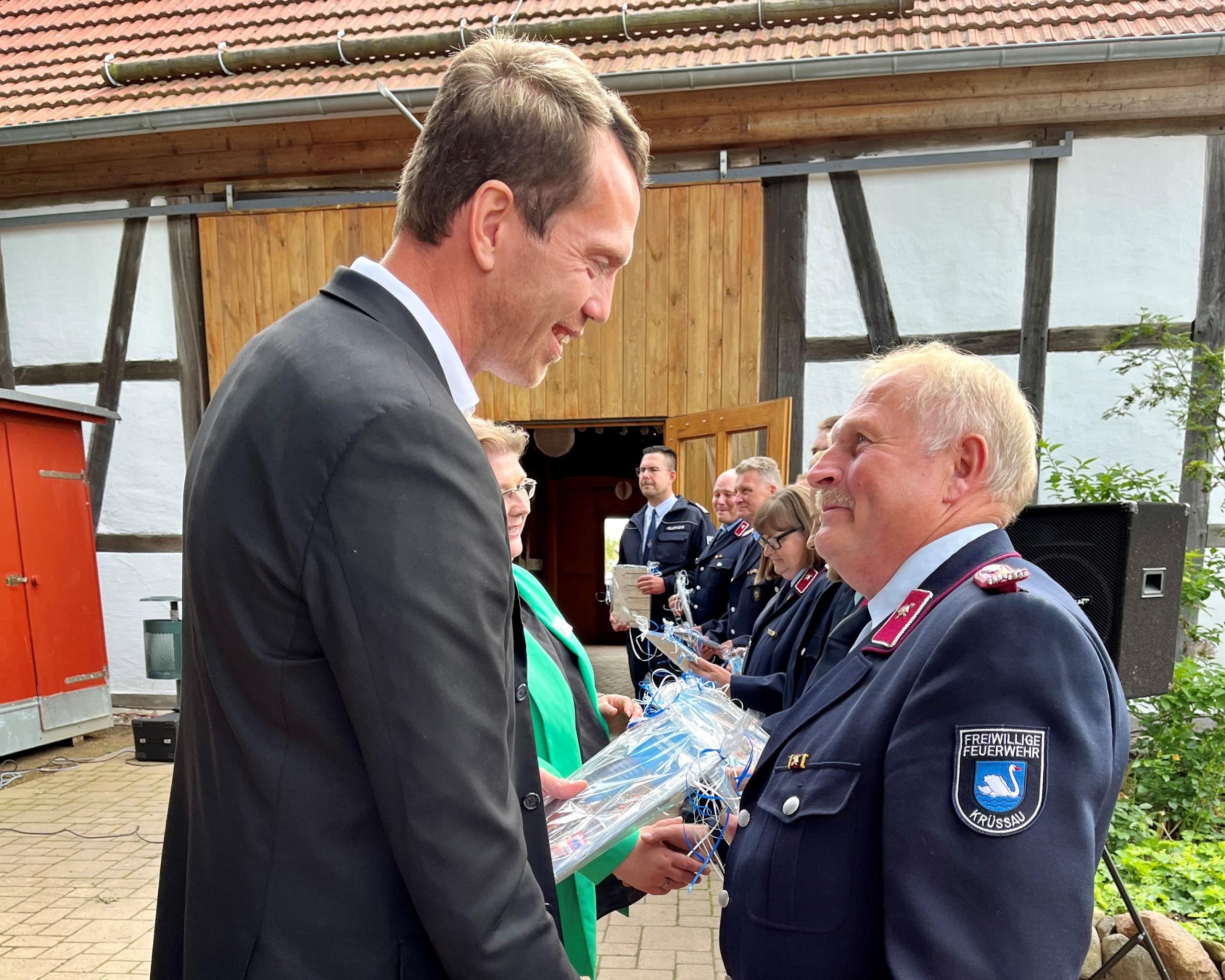 Landrat Dr. Burchhardt hob das ehrenamtliche Engagement der Kameradinnen und Kameraden hervor und verwies auf die hohe Einsatzbelastung durch die A2. Im Jahr 2022 wurden die Wehren allein zu 55 Einsätzen auf die Autobahn gerufen. Im Vorjahr waren es 39 Einsätzen, wobei besonders der Gefahrgutunfall bei Theeßen im August 2023 in Erinnerung geblieben ist, der zu einer mehrtätigen Sperrung der Autobahn führte.