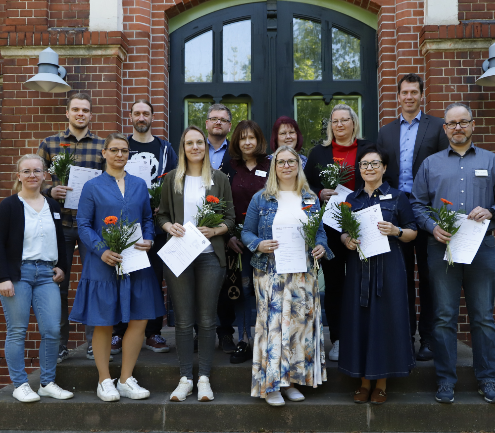 Landrat Dr. Burchhardt konnte zu Beginn der Woche 13 Mitarbeiterinnen und Mitarbeiter der Kreisverwaltung zur erfolgreich bestandenen Ausbildereignungsprüfung gratulieren. Die sogenannte „Ausbildung der Ausbilder“ vermittelt in einem mehrwöchigen Lehrgang alle notwendigen Kenntnisse und Fähigkeiten, um Nachwuchskräfte sowohl in fachlicher als auch in pädagogischer Hinsicht kompetent betreuen und anleiten zu können.