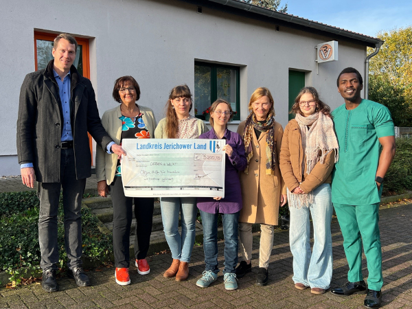 In der vergangenen Woche überreichten Landrat Dr. Steffen Burchardt und die Theologische Hochschule Friedensau einen Scheck über 3.200 Euro an die Geschäftsführerin Britta Hotzel der gemeinnützigen Einrichtung LEBEN s WERT in Möckern. Das Geld stammt aus den Erlösen des diesjährigen „Waldlaufs für den guten Zweck“ im April, dessen Schirmherr Landrat Dr. Burchhardt ist. LEBEN s WERT hat sich der Betreuung von Kindern mit Handicap und der Entlastung der pflegenden Angehörigen verschrieben und organisiert mehrmals jährlich Fahrten mit den Kindern in ein Ferienlager.