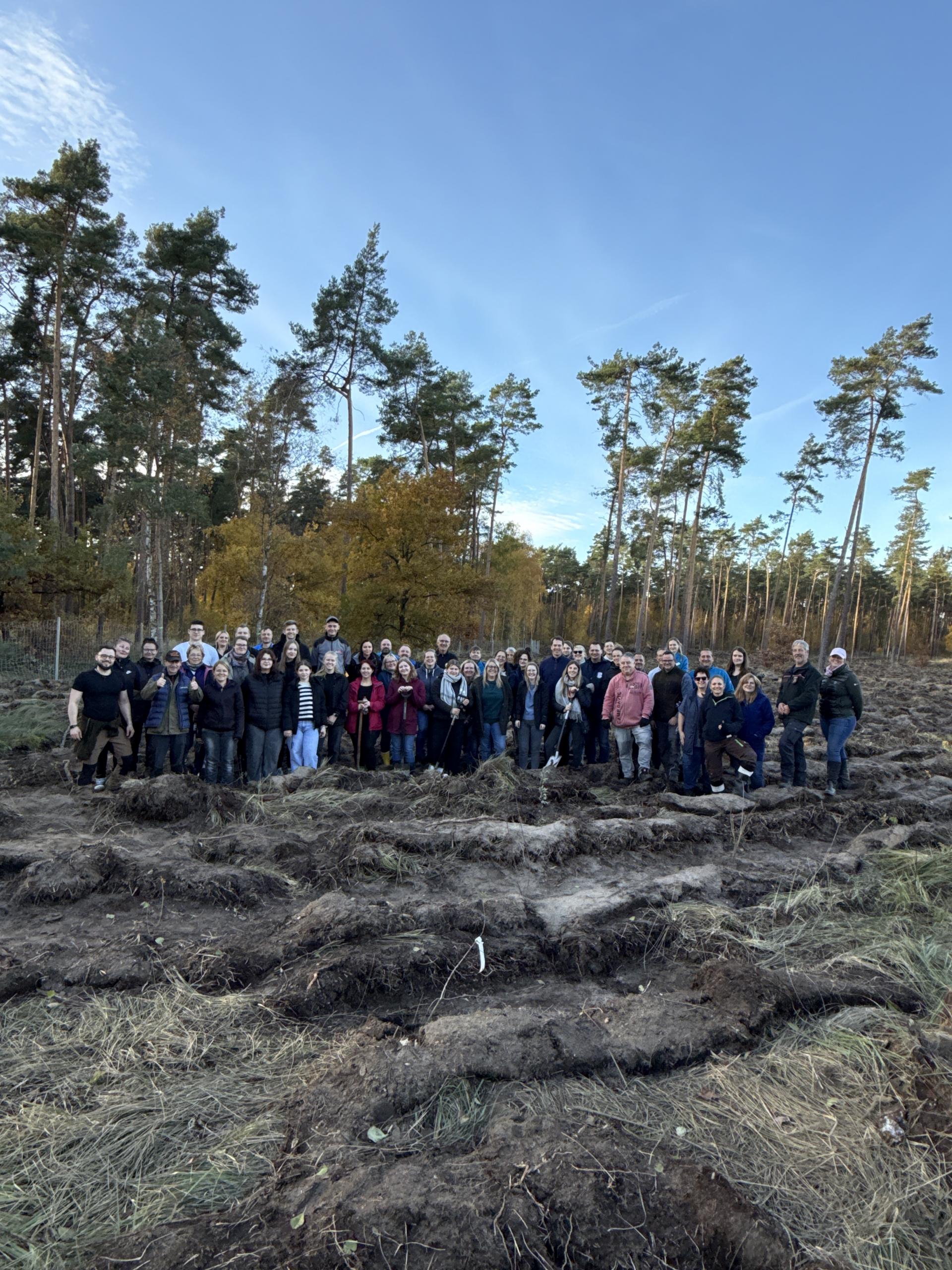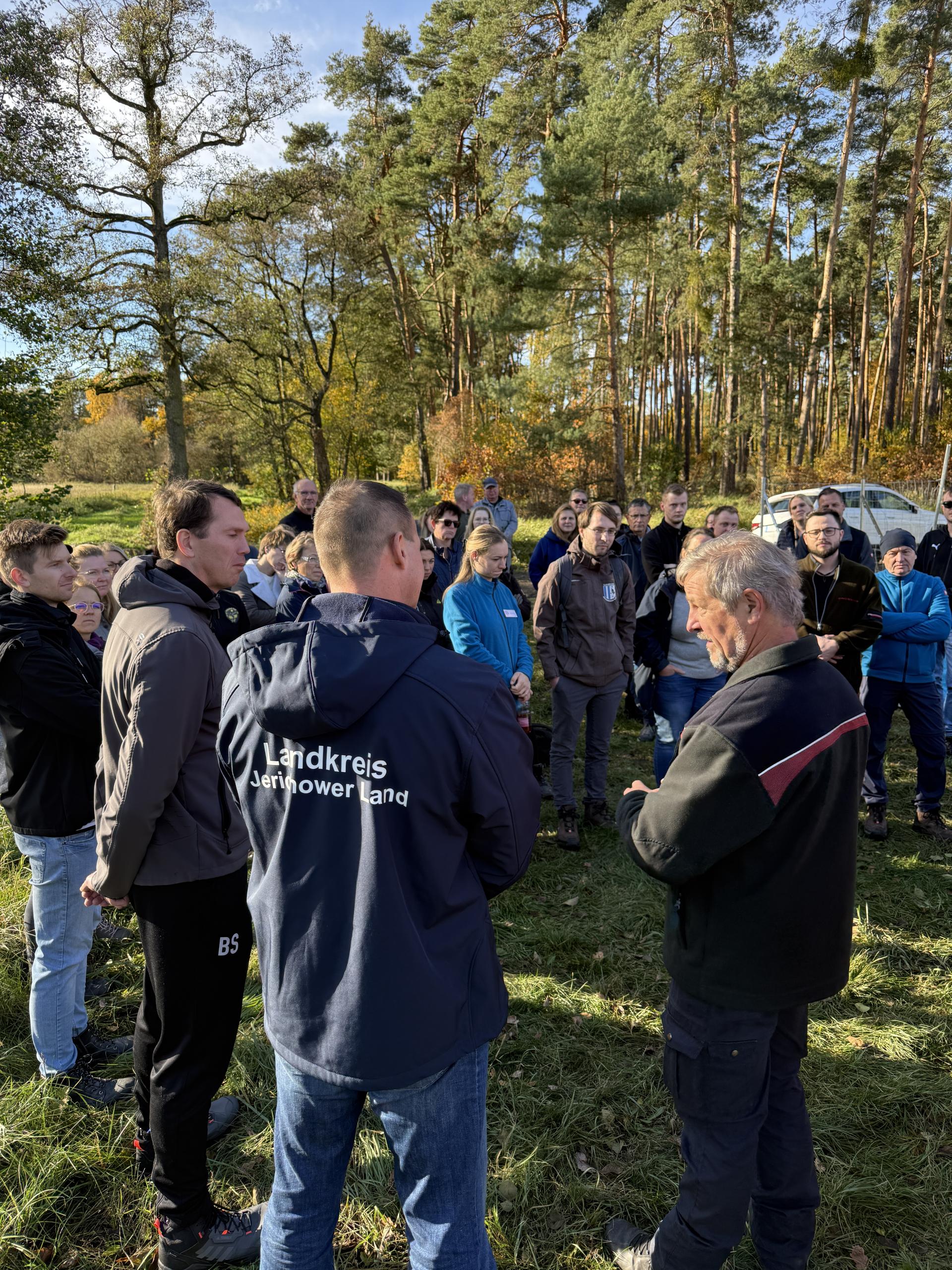 Am Mittwoch, 5. November 2025 pflanzten 60 Mitarbeiterinnen und Mitarbeiter der Kreisverwaltung anlässlich des Klima-Welt-Aktionstages im Kommunalwald nördlich des ehemaligen Waldbades Theeßen insgesamt 5.200 Stieleichen sowie 450 Sträucher und andere Laubbäume. Durch die Aufforstung des rund 18.000 qm großen Areals soll die bislang brachliegende Fläche wiederbelebt werden. Die Kosten für die etwa zwei Jahre jungen und zwischen 50 cm und 80 cm langen Eichen liegen im mittleren vierstelligen Bereich. Begleitet wurde die Aktion erneut von Revierförster Uwe Schmied und seinem Team vom Betreuungsforstamt Nedlitz des Landeszentrum Wald, die bereits in den vergangenen zwei Jahren die Pflanzaktionen der Kreisverwaltung fachlich begleiteten.
