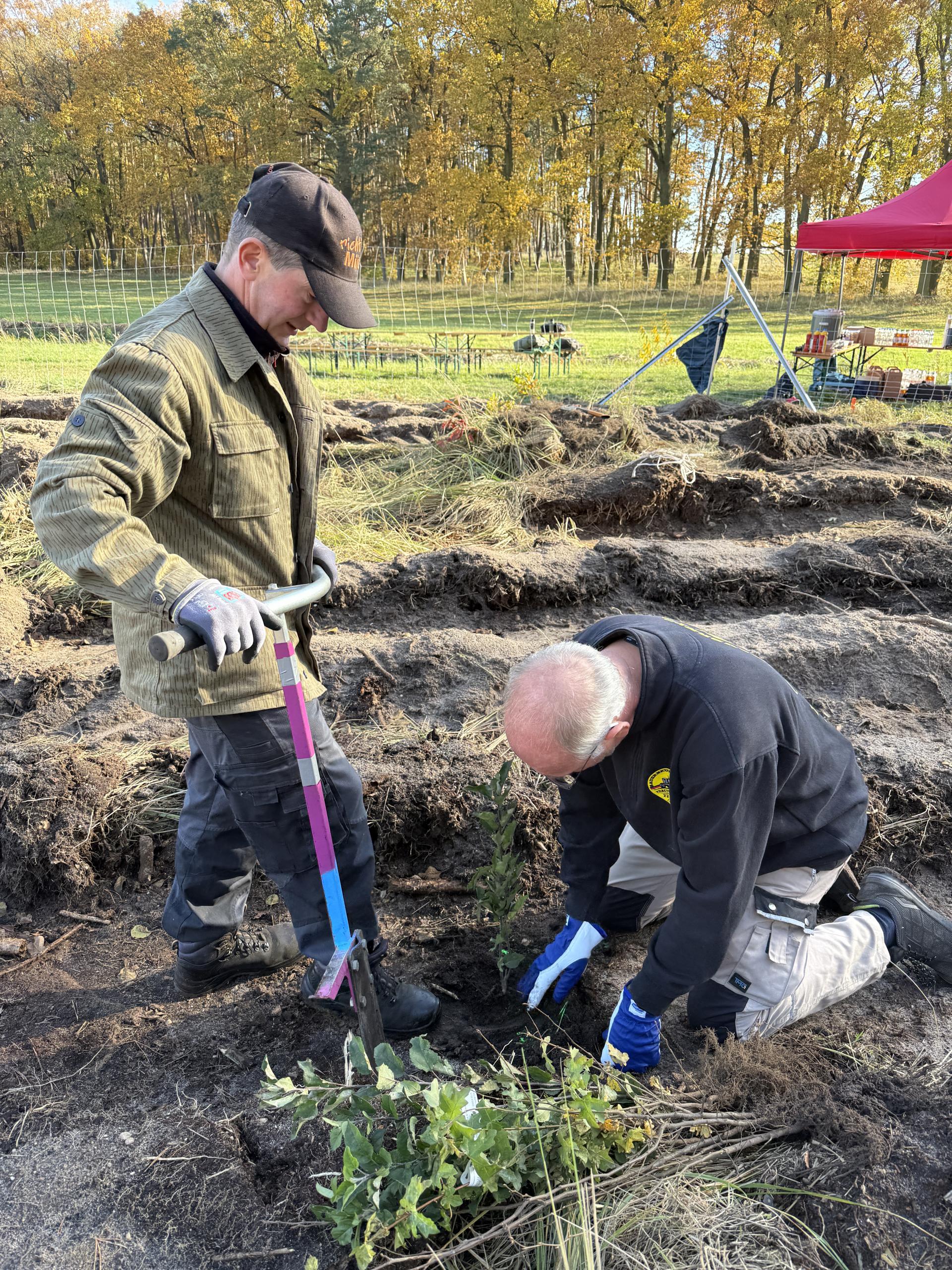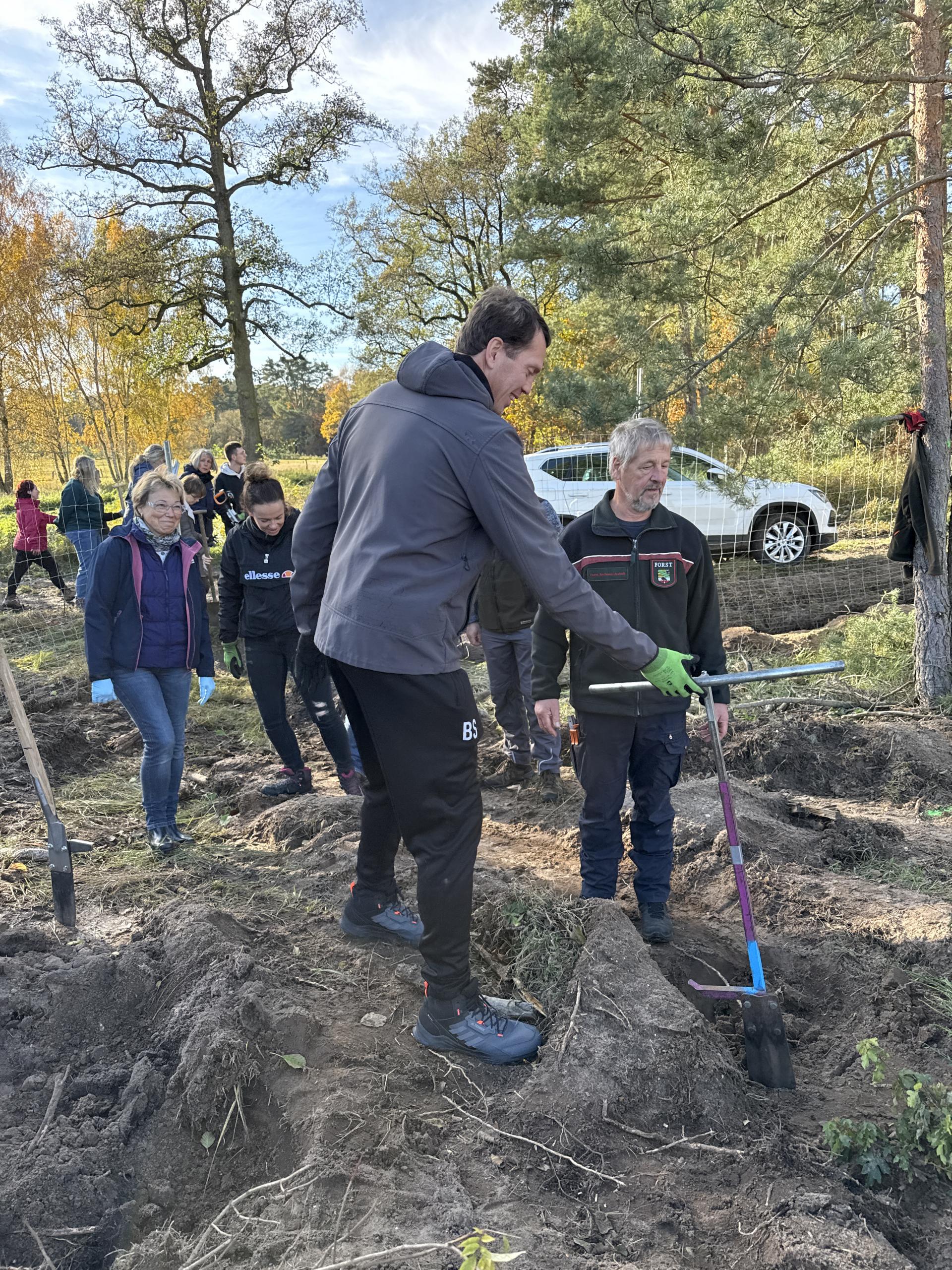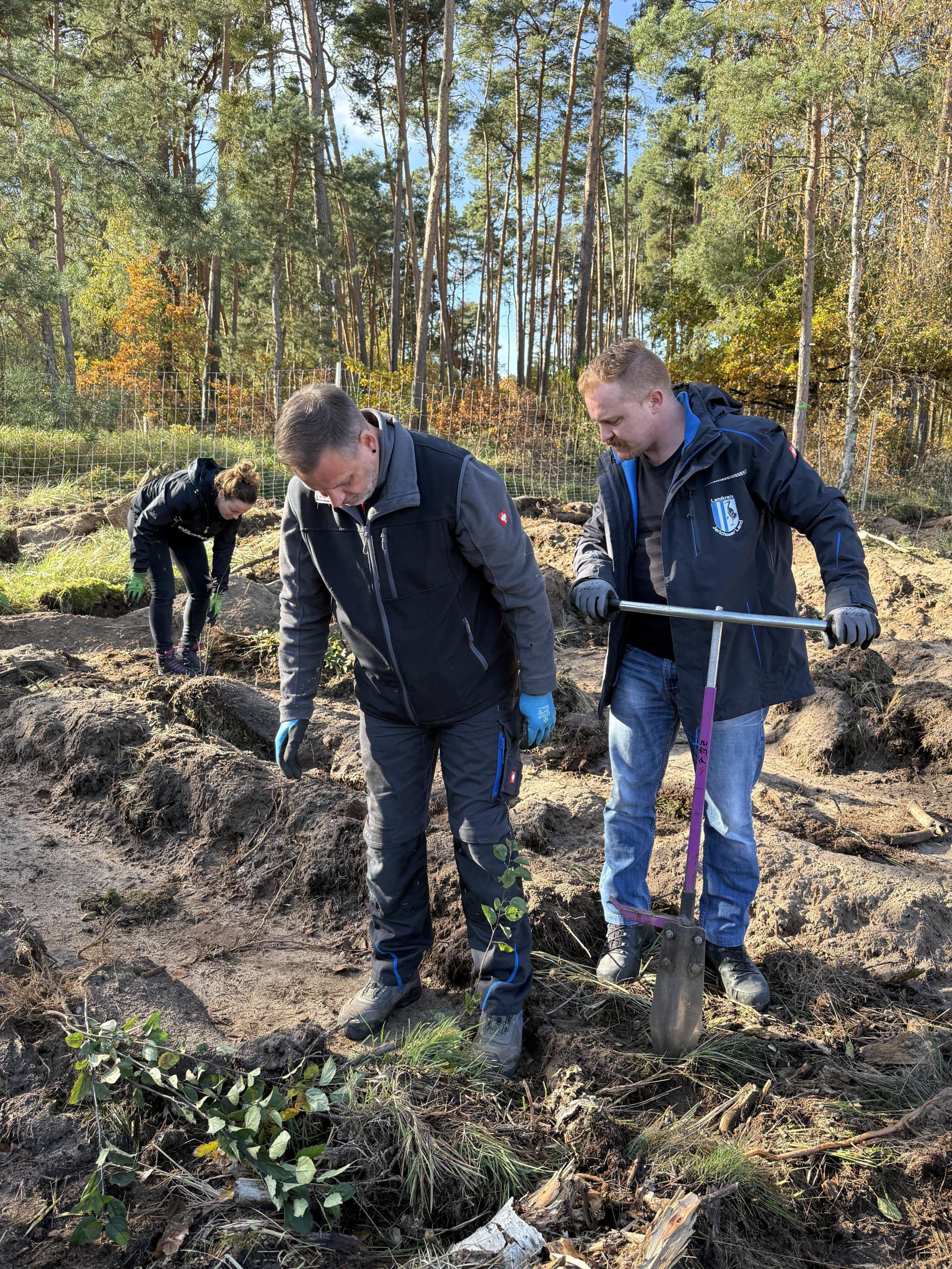 „Der Wald ist ein anspruchsvolles Ökosystem, das entsprechende Pflege und Aufmerksamkeit braucht, damit auch unsere Kinder und Enkelkinder in ein paar Jahrzehnten noch die Möglichkeit haben, einen Spaziergang durch den Wald zu genießen“, erklärt Landrat Dr. Steffen Burchhardt, der gemeinsam mit dem Beigeordnetem Stefan Dreßler und Vorstand Henry Liebe ebenfalls vor Ort unterstützte. „Dass erneut so viele Kollegen bereit waren beim Pflanzen zu helfen, freut mich doppelt, denn so wird zum einem die Waldfläche aufgewertet und zum anderen der Teamgeist in der Kreisverwaltung gestärkt“, so Landrat Dr. Burchhardt. Bereits 2023 pflanzten die Mitarbeiter der Kreisverwaltung in einem Waldstück zwischen Theeßen und Stresow heimischen Baumarten wie Feldahorn und Hainbuche sowie Holunder- und Ginstersträucher und im vergangenen Jahr bei Steglitz Birken und Eichen.