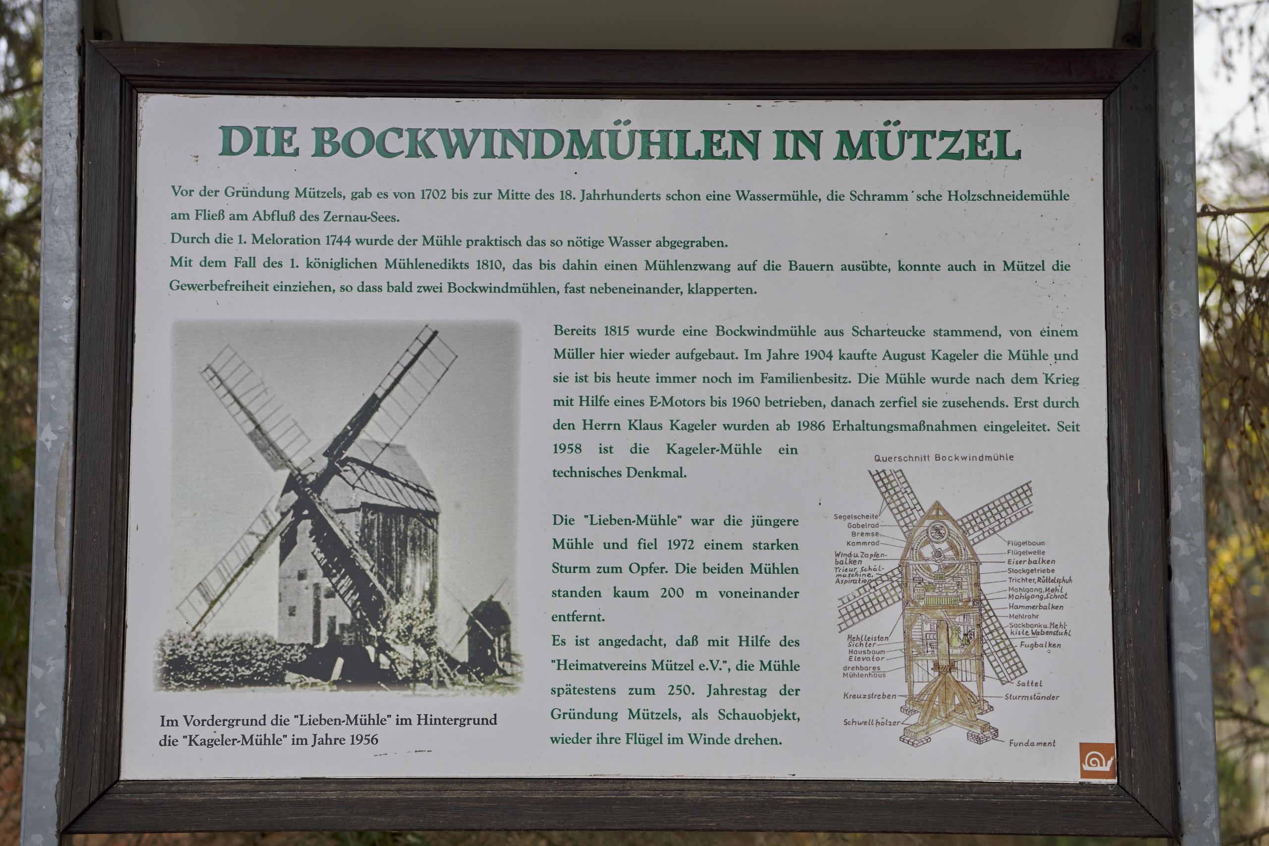 Ebenfalls sehenswert ist die Bockwindmühle von Mützel, welche Teil der Mühlentour im Jerichower Land ist und früher als Getreidemühle genutzt wurde. Auch die denkmalgeschützte Fachwerkkirche ist einen Besuch wert.