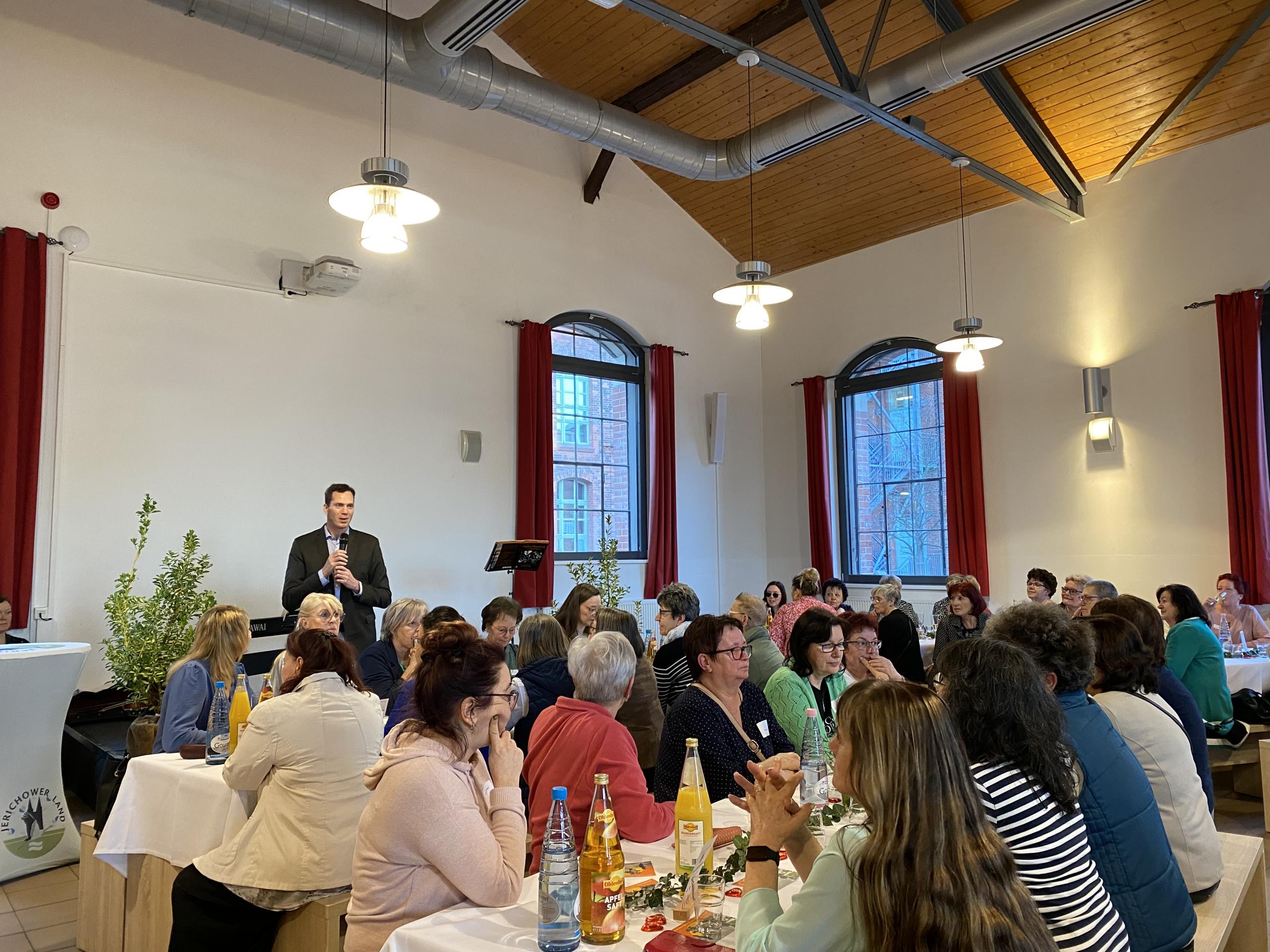 Am 6. März 2025 fand in den Räumlichkeiten der Berufsschule „Conrad Tack“ die traditionelle Vor-Frauentagsfeier des Landkreises statt. Im Mittelpunkt der Veranstaltung standen die langjährigen ehrenamtlichen Wahlhelferinnen. Mehr als 80 engagierte Frauen aus verschiedenen Ortschaften folgten der Einladung von Landrat Dr. Steffen Burchhardt, um den Abend gemeinsam zu genießen und sich auszutauschen.